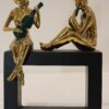 A stylish décor piece featuring a musical couple with a luxury golden finish, seated over a modern black frame. Perfect for living rooms, showcase décor, restaurants, studios & gifting to couples. Brings love, peace & artistic vibes to any space.