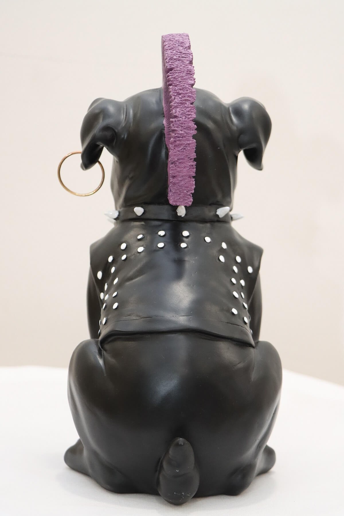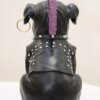 Featuring a fierce expression, purple mohawk, ear ring, and studded leather jacket — this showpiece is the ultimate symbol of rebellion and street style.