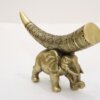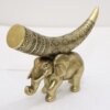Elegant golden elephant carrying a beautifully carved tribal horn. A symbol of strength, wisdom & prosperity. Ideal for home décor, offices, temples & gifting. Perfect to enhance royal interior styling.